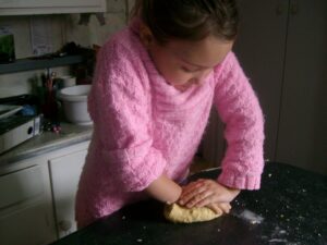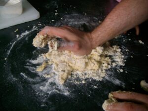 - Knead the dough for about 10 minutes to make it pliable. Of course, you can always employ some child labour for this step. 🙂