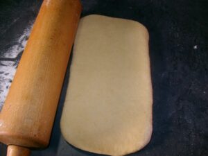 - Roll the dough out on a lightly floured work surface (1cm thick). This will make it easier to pass through the machine.