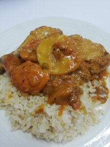 A family favourite! My seven-year-old daughter especially loves this. Fruity and savoury potjie with hints of cinnamon and ginger, what's not to like? I serve this with brown rice or cornbread, sometimes both.